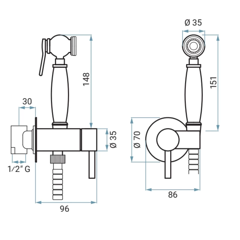 Гигиенический душ Emmevi 179/BR со смесителем, бронза
