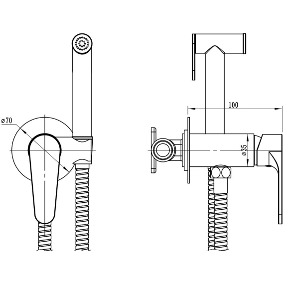 Душевой шланг, Душевая лейка, Подключение для душевого шланга с держателем, Скрытая монтажная часть, Смеситель