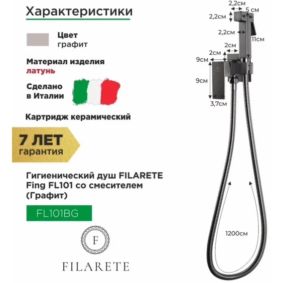 Гигиенический душ Filarete Fing FL101BG со смесителем, графит