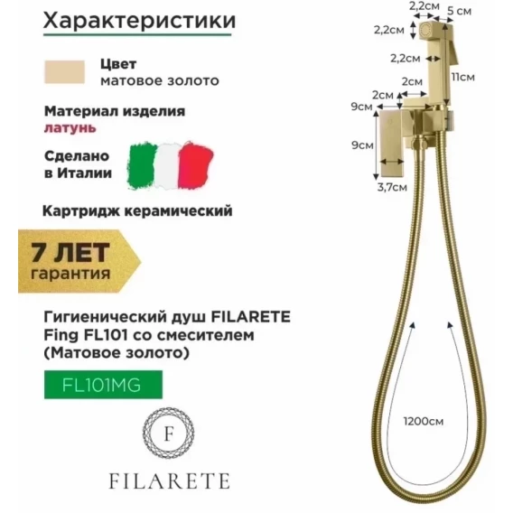 Гигиенический душ Filarete Fing FL101MG со смесителем, золотой матовый