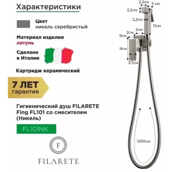 Гигиенический душ Filarete Fing FL101NK со смесителем, никель