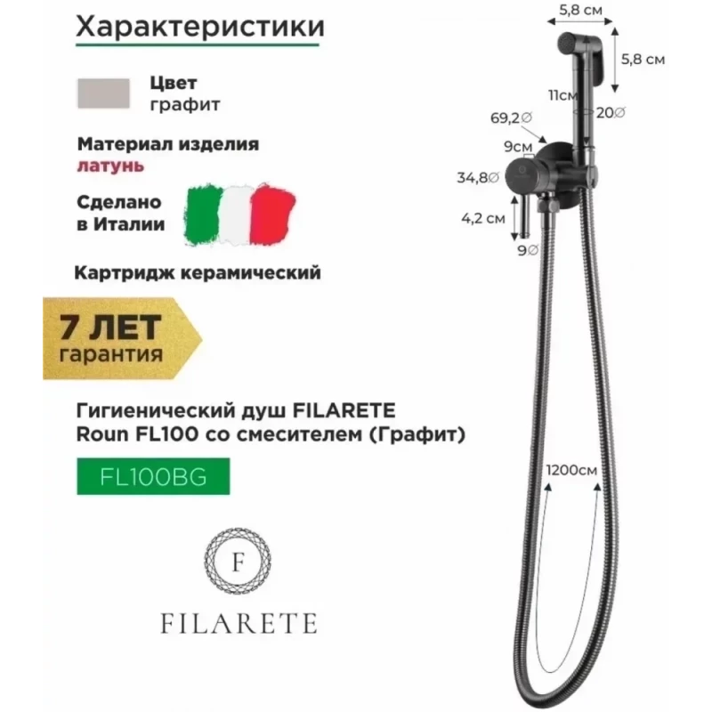 Гигиенический душ Filarete Roun FL100BG со смесителем, графит