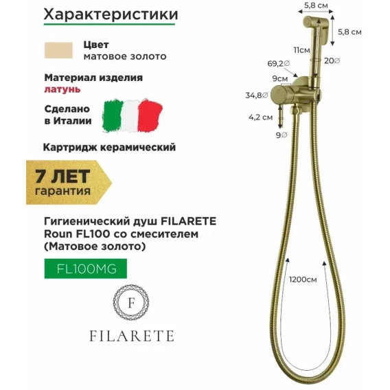 Гигиенический душ Filarete Roun FL100MG со смесителем, золотой матовый