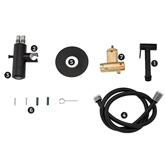 Душевой шланг, Душевая лейка, Подключение для душевого шланга с держателем, Скрытая монтажная часть, Термостат