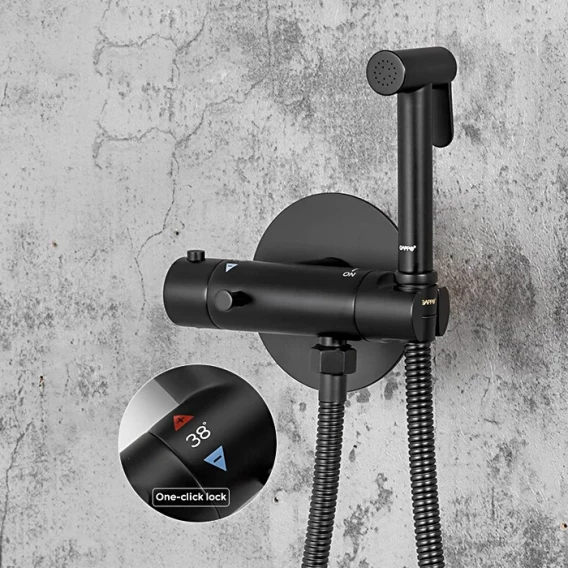 Гигиенический душ Abber Rund AF8725B CoolStart, со смесителем, черный матовый