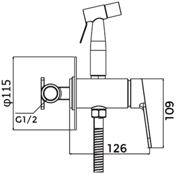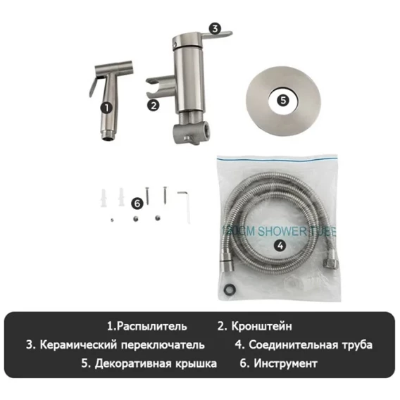 Душевой шланг, Душевая лейка, Подключение для душевого шланга с держателем, Скрытая монтажная часть, Смеситель