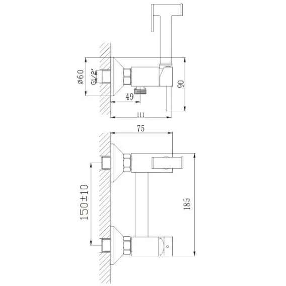 Гигиенический душ Haiba HB5520 со смесителем, нержавеющая сталь