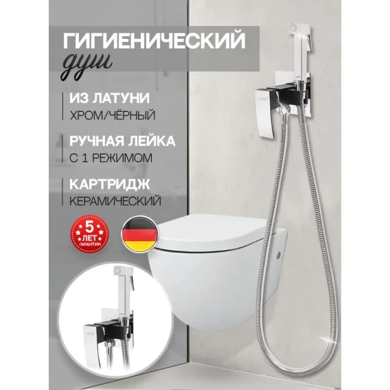 Гигиенический душ Hansberge Cubito H3077BC со смесителем, хром/черный матовый