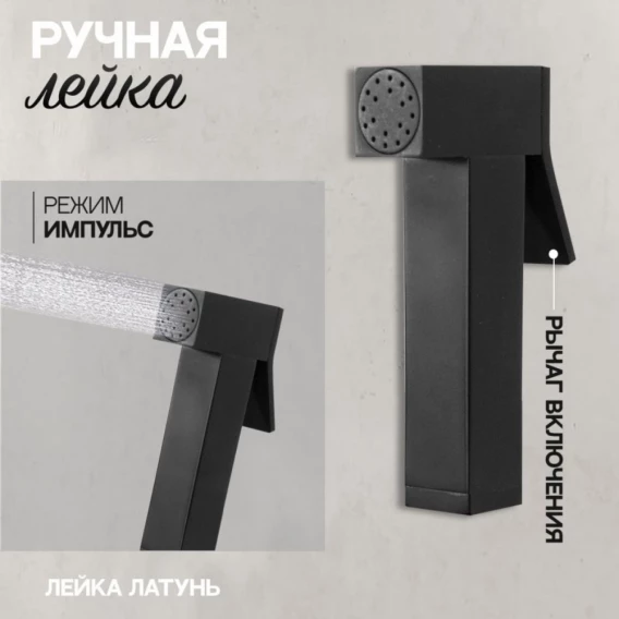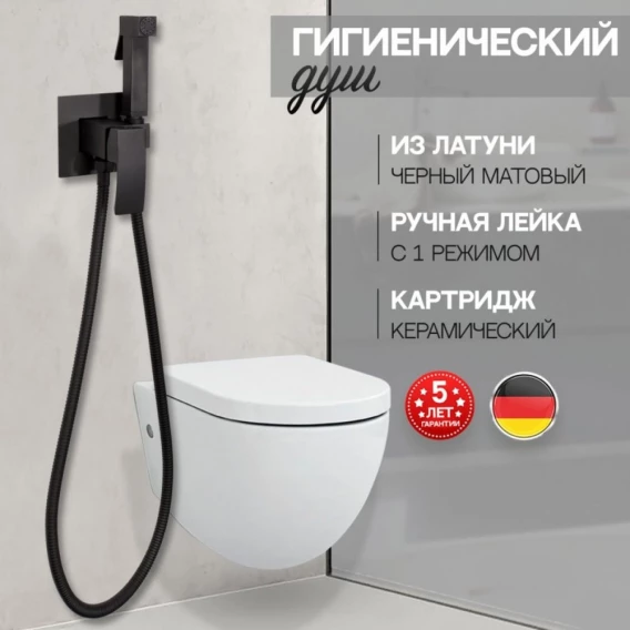 Гигиенический душ Hansberge Cubito H3077BL со смесителем, черный матовый
