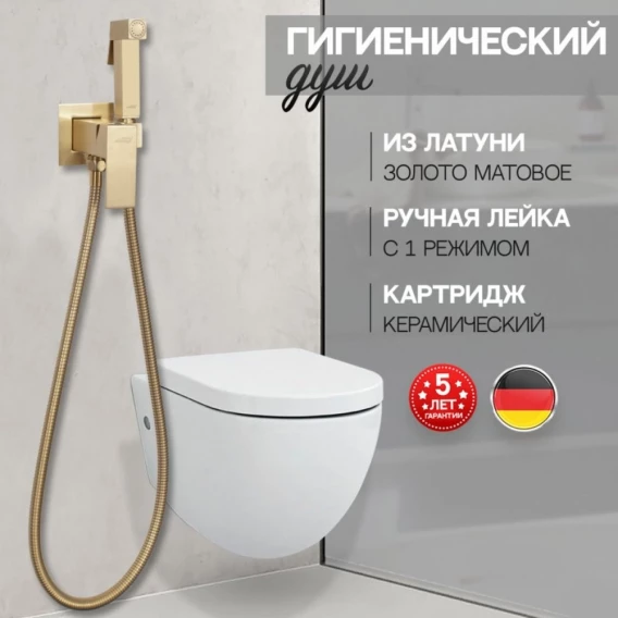 Гигиенический душ Hansberge Cubito H3077MG со смесителем, золотой матовый