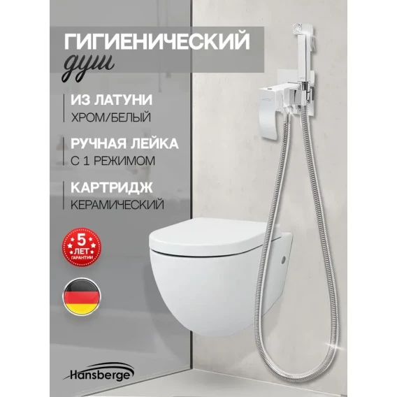 Гигиенический душ Hansberge Cubito H3077W со смесителем, хром/белый