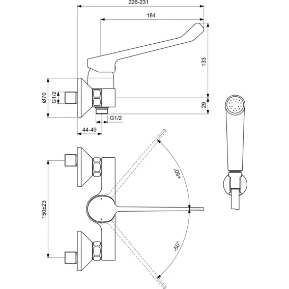 Гигиенический душ Ideal Standard Base B5117AA со смесителем, хром