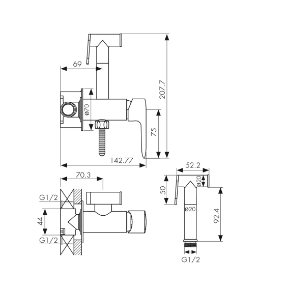 Гигиенический душ Kaiser Estilo 62188 со смесителем, хром