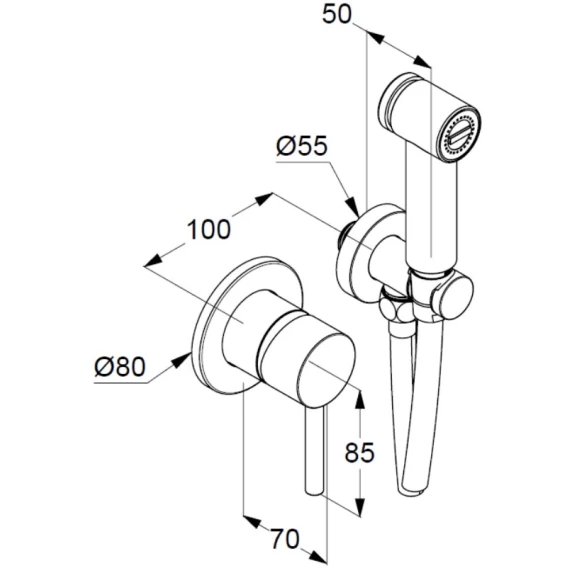 Душевой шланг, Душевая лейка, Подключение для душевого шланга с держателем, Скрытая монтажная часть, Смеситель