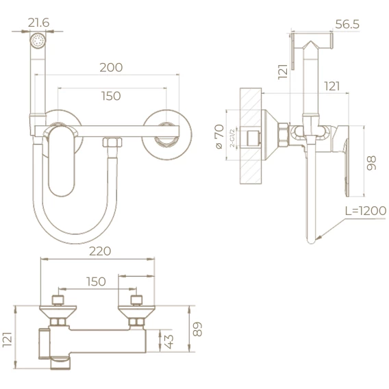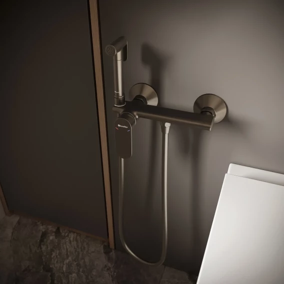 Гигиенический душ Knotlor Dew FHS01S0GM со смесителем, вороненая сталь