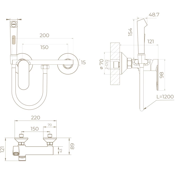 Металлическая розетка, Эксцентрики, Душевой шланг, Душевая лейка, Держатель для душевой лейки, Смеситель