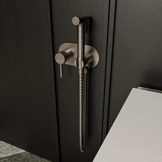 Гигиенический душ Knotlor Dew FHS01S1GM со смесителем, вороненая сталь
