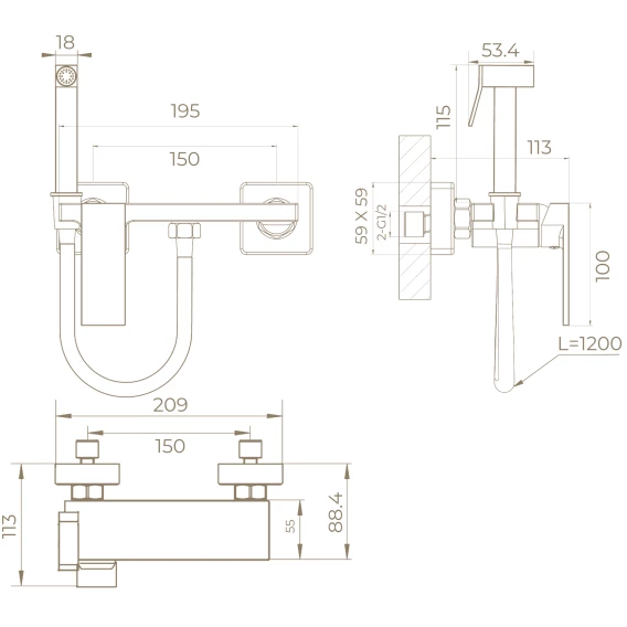 Гигиенический душ Knotlor Mist FHS02S0GM со смесителем, вороненая сталь