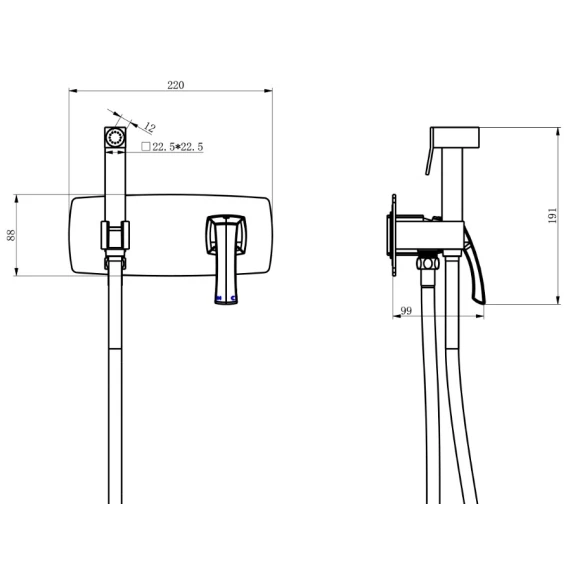 Душевой шланг, Душевая лейка, Подключение для душевого шланга с держателем, Скрытая монтажная часть, Смеситель