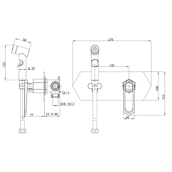 Душевой шланг, Душевая лейка, Подключение для душевого шланга с держателем, Скрытая монтажная часть, Смеситель