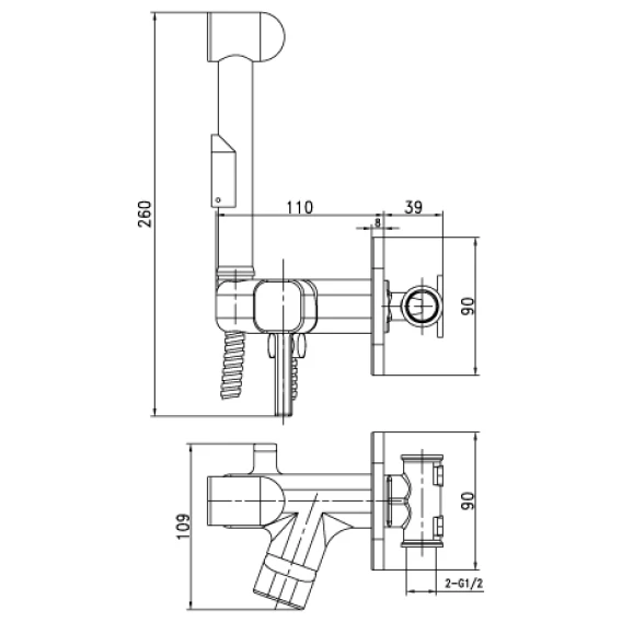 Душевой шланг, Душевая лейка, Подключение для душевого шланга с держателем, Крючок, Скрытая монтажная часть