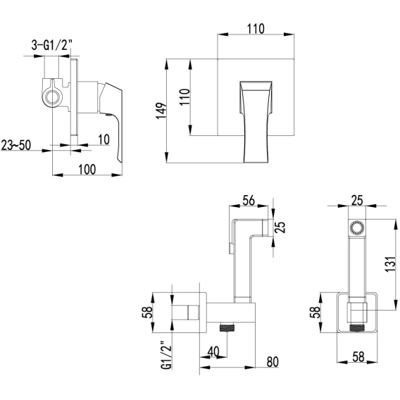 Душевой шланг, Душевая лейка, Подключение для душевого шланга с держателем, Скрытая монтажная часть