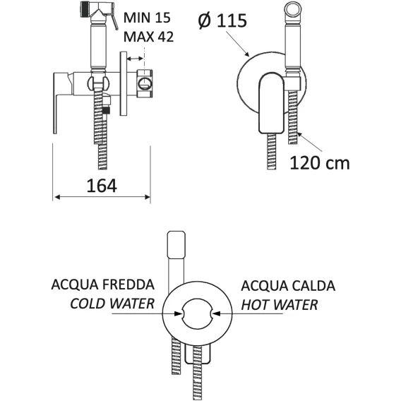 Душевой шланг, Душевая лейка, Подключение для душевого шланга с держателем, Скрытая монтажная часть, Смеситель