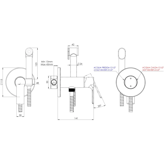 Душевой шланг, Душевая лейка, Подключение для душевого шланга с держателем, Скрытая монтажная часть, Смеситель