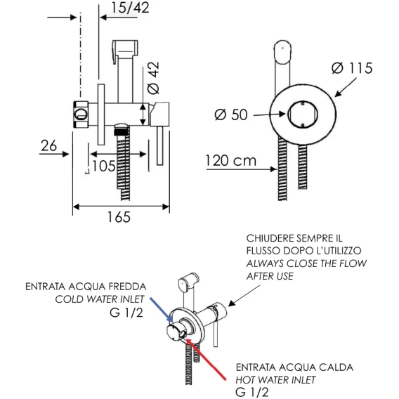 Гигиенический душ Filarete Roun FL100BL со смесителем, черный матовый