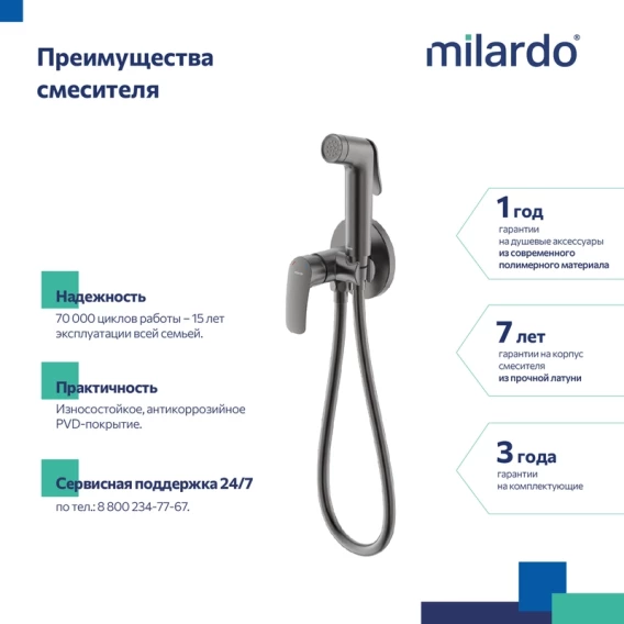 Гигиенический душ Milardo Rora RORGMR0M08 со смесителем, графит матовый