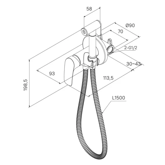 Душевой шланг, Душевая лейка, Подключение для душевого шланга с держателем, Скрытая монтажная часть, Смеситель