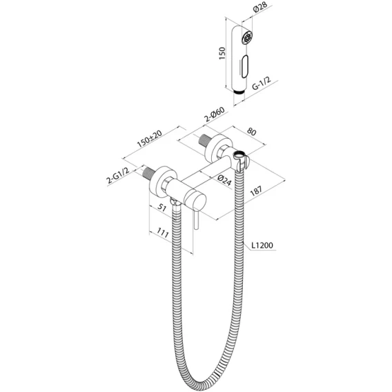 Гигиенический душ Milardo Tidy TIDBL15M08 со смесителем, черный матовый