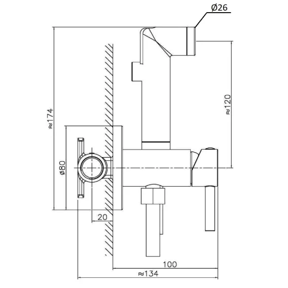 Душевой шланг, Душевая лейка, Подключение для душевого шланга с держателем, Скрытая монтажная часть, Смеситель