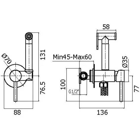Гигиенический душ Splenka S98.52.06 со смесителем, черный матовый