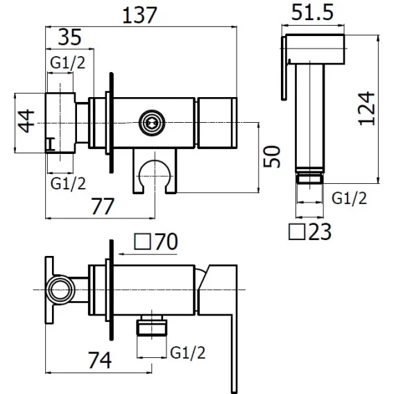 Душевой шланг, Душевая лейка, Подключение для душевого шланга с держателем, Скрытая монтажная часть, Смеситель