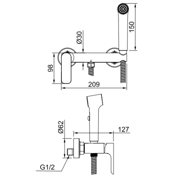 Гигиенический душ Raglo R03.51.09 со смесителем, графит матовый