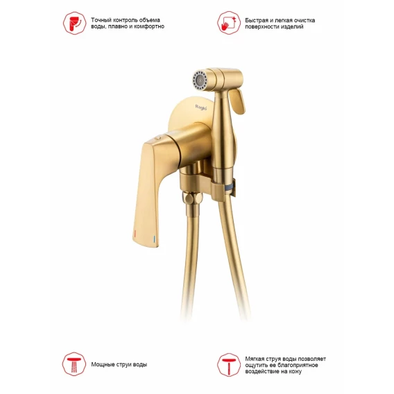 Гигиенический душ Raglo R07.52.03 со смесителем, золотой матовый