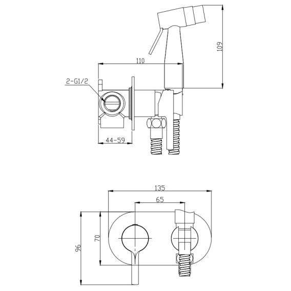 Душевой шланг, Душевая лейка, Подключение для душевого шланга с держателем, Скрытая монтажная часть, Смеситель