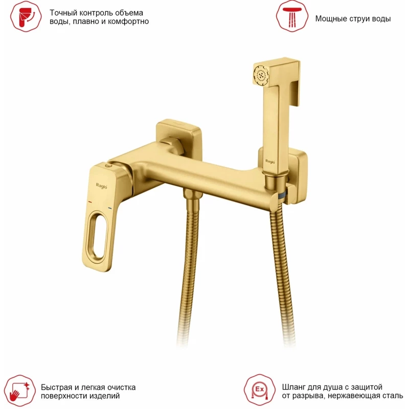 Гигиенический душ Raglo R51.51.03 со смесителем, золотой матовый