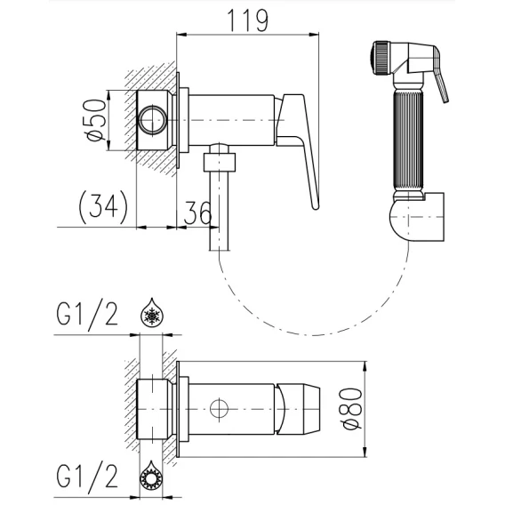 Душевой шланг, Душевая лейка, Держатель для душевой лейки, Скрытая монтажная часть, Смеситель