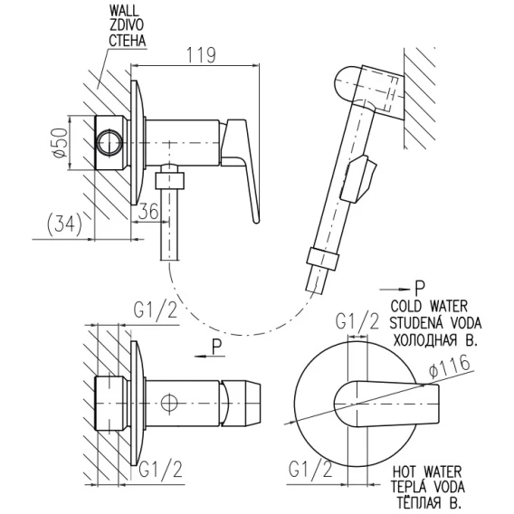 Гигиенический душ Rav Slezak Kongo K047/1 со смесителем, хром