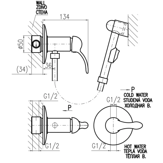 Гигиенический душ Rav Slezak Labe L047/1 со смесителем, хром