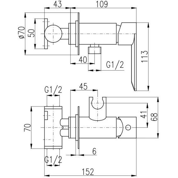 Душевой шланг, Душевая лейка, Подключение для душевого шланга с держателем, Скрытая монтажная часть, Смеситель
