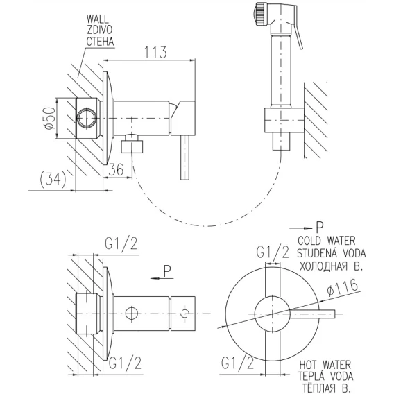 Душевой шланг, Душевая лейка, Держатель для душевой лейки, Скрытая монтажная часть, Смеситель