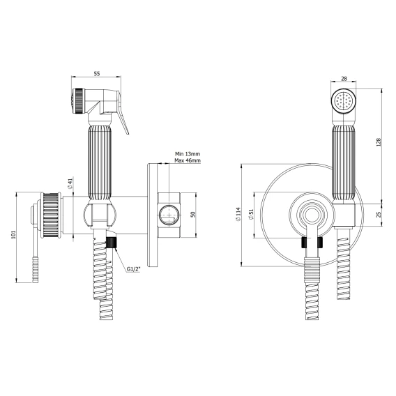 Гигиенический душ Remer Atelier AL65ZNO со смесителем, черный матовый