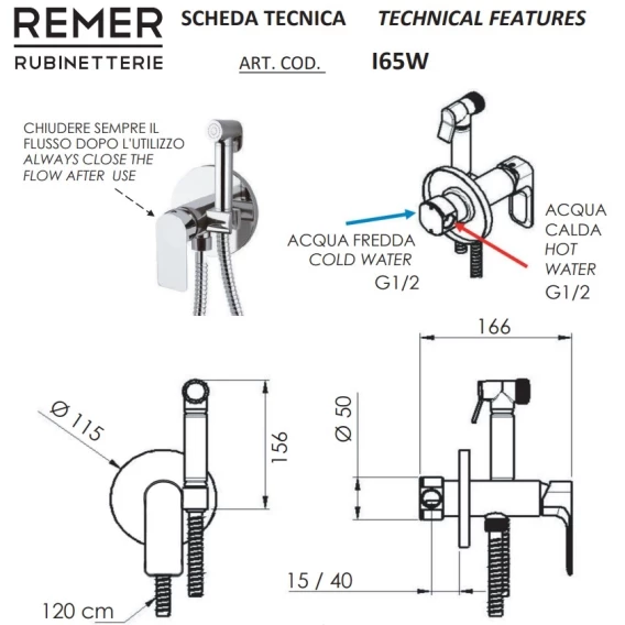 Гигиенический душ Remer Infinity I65WNO со смесителем, черный матовый