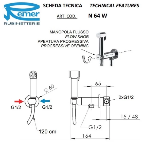 Гигиенический душ Remer Minimal N64WBG со смесителем, золотой матовый