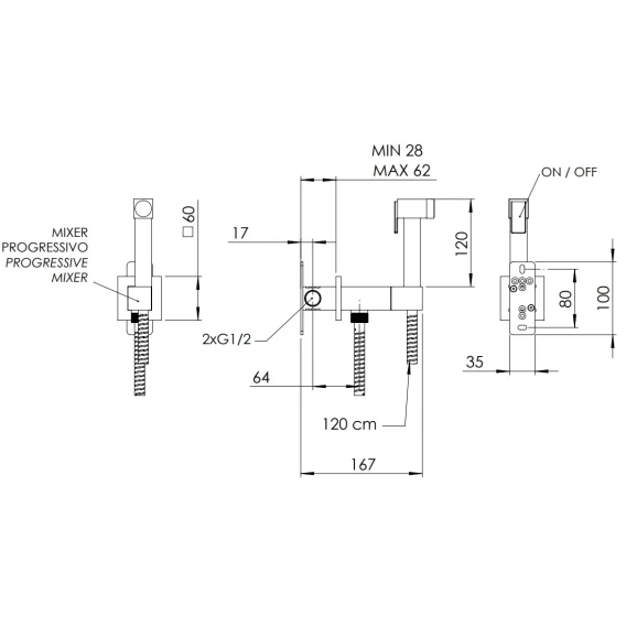 Гигиенический душ Remer Qubika Q64VO со смесителем, бронза