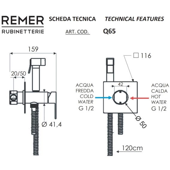 Гигиенический душ Remer Qubika Q65NO со смесителем, черный матовый