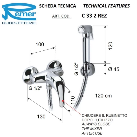 Гигиенический душ Remer Serie 35 C332REZVO со смесителем, бронза